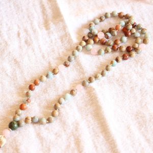 Le Mala avec 108 perles est utilisé pour réciter ou chanter des mantras, exactement comme peut l’être le chapelet dans la religion chrétienne. Le mantra est l’utilisation pratique des pouvoirs secrets qui peuvent aider notre progrès spirituel. Mantra signifie une “collection de lettres de l’alphabet”. L’effet sera produit en répétant le mantra encore et encore, et va devenir plus profond au grès de la récitation. Essentiel est le son qui est produit en récitant. Ce bruit crée une empreinte spirituelle unique sur la personne qui est en train de réciter.