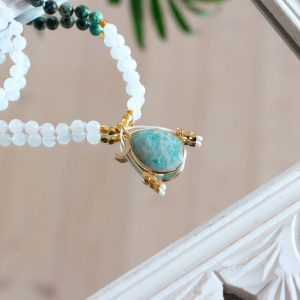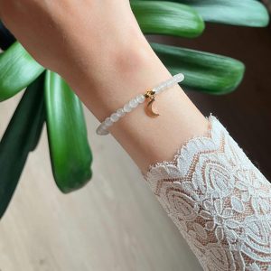 Comme son nom l’indique, son lien avec la lune est fort, de même qu’avec l’intuition. Telle la lune, la pierre est un miroir, qui rappelle que tout fait partie d’un cycle de changements, à l’image de la croissance et au déclin de cet astre. Elle favorise l’intuition et l’empathie. Son effet le plus puissant s’exerce sur l’apaisement des émotions : la pierre de lune fait fondre l’amertume et laisse place à des émotions plus douces… En Inde, on l’appelle aussi “la pierre de rêve” car on dit que la pierre de lune améliore le sommeil et la qualité des rêves. Chargée d’une énergie réceptive, passive, féminine, elle équilibre les énergies masculine et féminine et aide les hommes qui veulent entrer en contact avec leur partie féminine. C’est aussi le parfait antidote pour les femmes trop agressives. Sur le plan physique, la pierre de lune influence fortement le cycle menstruel féminin, qu’elle équilibre en harmonisant l’horloge biologique (excellente pour le syndrome prémenstruel, la conception, la grossesse, l’accouchement et l’allaitement). Avec la pierre de lune, laissez votre part féminine s’exprimer et s’épanouir !